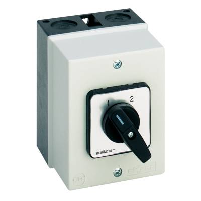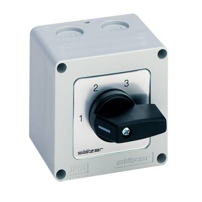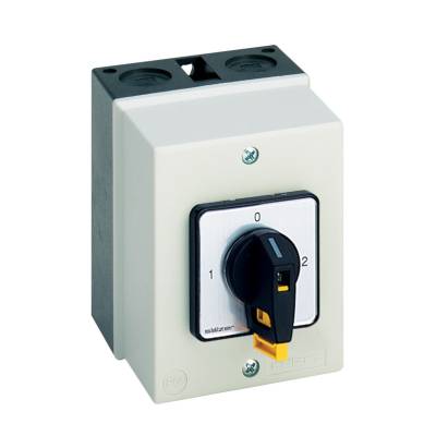 Nokkensch. 20A, 7,5kW IP20 AAN-UIT Sch. 60°, 3P V-Greep ZW In behuizin