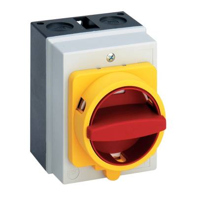 Nokkensch. 25A, 11kW IP20 AAN-UIT Sch. 90°, 10P M-Draaikn.RD/GE In beh